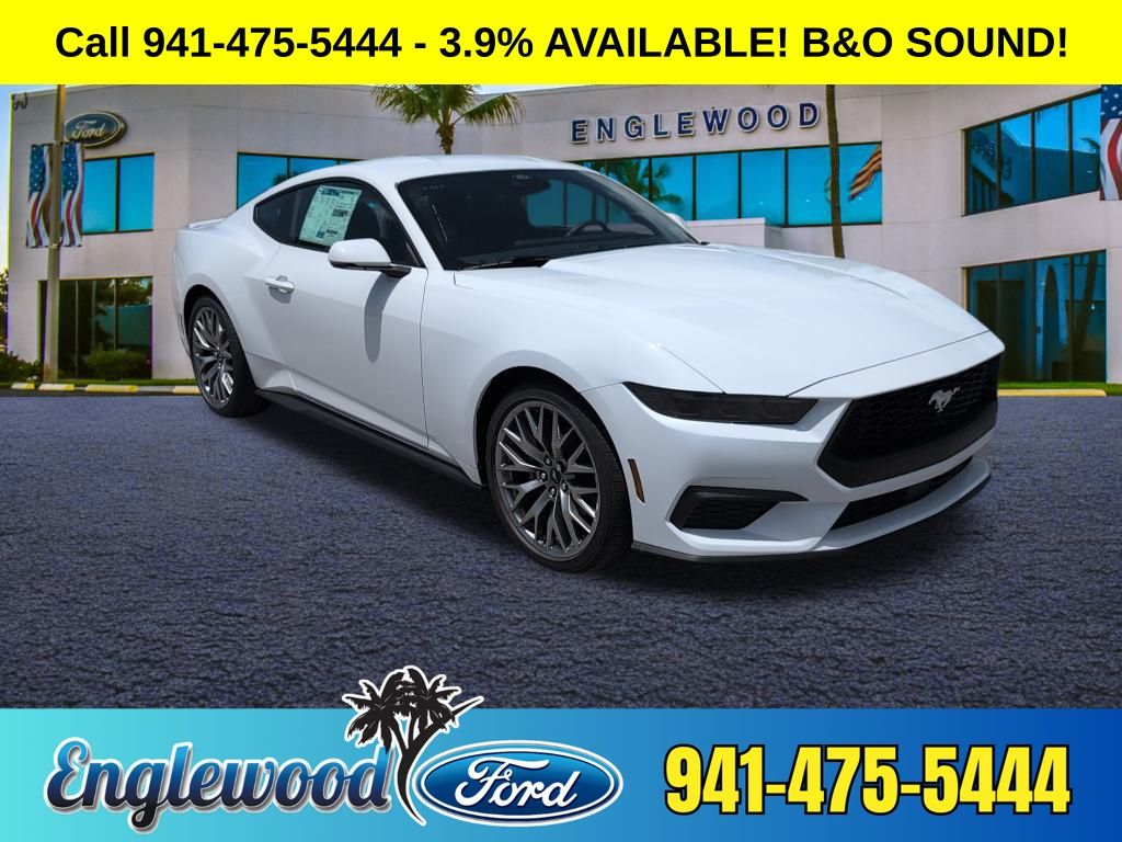 2025 Ford Mustang 3.9% AVAILABLE!, B&O SOUND!, ACTIVE VALVE PERFORMANCE!, 20″ Wheels, 9 Speakers, ABS brakes, Active Anti-Theft System, Active Valve Performance Exhaust, Adaptive Cruise Control w/Stop & Go, Air Conditioning, AM/FM radio: SiriusXM with 360L, Auto High-beam Headlights, Automatic temperature control, B&O Sound System by Bang & Olufsen w/12 Speakers, Bumpers: body-color, Compass, Connected Navigation, Driver Seat & Mirrors Memory, Electronic Stability Control, Emergency communication system: 911 Assist, Equipment Group 201A High Package, Ford Co-Pilot360 Assist+, Front Bucket Seats, Front dual zone A/C, Fully automatic headlights, Illuminated Door-Sill Scuff Plates, Illuminated entry, Integrated Turn Signals, Lane-Keeping System w/Lane Keeping Aid, Leather Shift Knob, Leather-Trimmed Bucket Seats w/Color Accents, Locking Center Console, Outside temperature display, Overhead console, Power steering, Power windows, Pre-Collision Assist w/Automatic Emergency Braking, Premium Floor Liners Front & Rear (w/Carpet Mats), Rear Parking Sensors, Remote keyless entry, Security Package, Split folding rear seat, Steering wheel mounted audio controls, SYNC® 4, Telescoping steering wheel, Tilt steering wheel, Traction control, Universal Garage Door Opener (UGDO), Variably intermittent wipers, Wheel Locking Kit, Wheels: 20″ x 9″ Premium-Painted Aluminum. EcoBoost® Premium RWD 10-Speed Automatic
