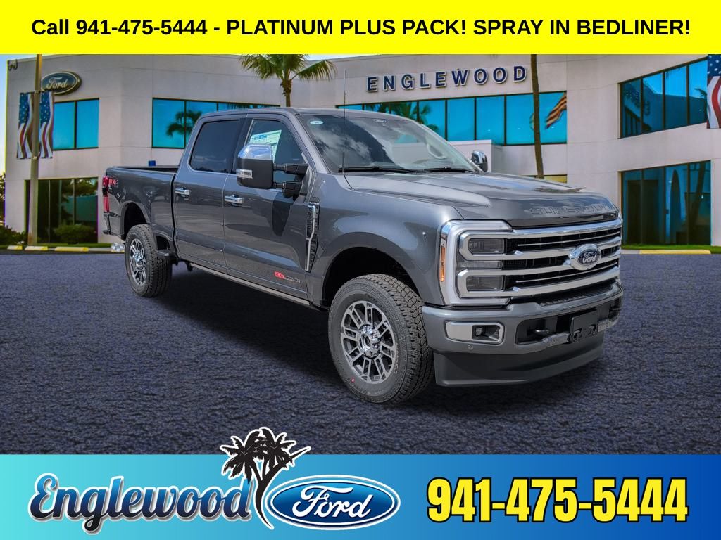 2026 Ford F-250SD PLATINUM PLUS PACK!, SPRAY IN BEDLINER!, 14 Speakers, ABS brakes, Adjustable pedals, Air Conditioning, AM/FM radio: SiriusXM with 360L, Auto-dimming Rear-View mirror, Automatic temperature control, Brake assist, Compass, Driver door bin, Electronic-Locking w/3.31 Axle Ratio, Emergency communication system: SYNC® 4 911 Assist, F-250 >10K GVWR Package, Flow-Through Console, Ford Connectivity Package (1-Year Included), Front Center Armrest, Front dual zone A/C, Front fog lights, Fully automatic headlights, FX4 Off-Road Package, Garage door transmitter, Heads-Up Display, Heated door mirrors, Heated front seats, Heated rear seats, Heated steering wheel, High Capacity 11.6″ Axle Upgrade Package, Hill Descent Control, Illuminated entry, Illuminated Scuff Plates, Internet access capable: 5G Modem – Ford Connectivity Package, Memory seat, Navigation system: Connected Navigation, Off-Road Specifically Tuned Shock Absorbers, Order Code 703A, Outside temperature display, Overhead console, Panic alarm, Passenger vanity mirror, Pedal memory, Platinum Plus Package, Power driver seat, Power steering, Power windows, Premium Leather IP Topper, Premium Luxury Leather-Wrapped Steering Wheel, Premium Venetian Leather Door Panel, Pro Power Onboard – 2kW, Radio: B&O Unleashed Sound System by Bang & Olufsen, Remote keyless entry, Satin Chrome Door Handles, Security system, SiriusXM w/360L, Speed control, Split folding rear seat, Steering wheel memory, Steering wheel mounted audio controls, SYNC® 4 w/Enhanced Voice Recognition, Tachometer, Telescoping steering wheel, Tilt steering wheel, Tough Bed Spray-In Bedliner, Trip computer, Twin Panel Power Moonroof, Unique FX4 Off-Road Box Decal, Unique Platinum Plus Luxury Lthr 40/Console/40 Seats, Unique Satin Finish Grille, Unique Split Center Console Armrest, Upfitter Switches (6), Vehicle Integration System 2.0, Ventilated front seats, Wheels: 20″ Bright Machined Aluminum. Platinum 4WD 10-Speed Automatic