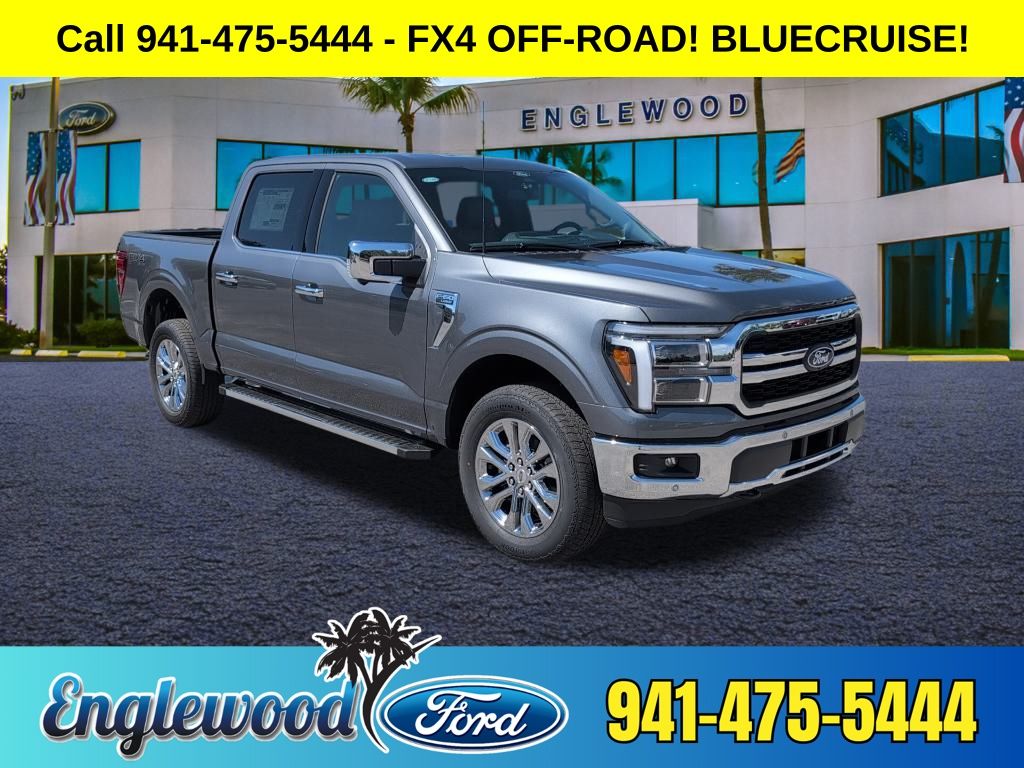 2025 Ford F-150 FX4 OFF-ROAD!, BLUECRUISE!, 4×4 FX4 Off-Road Bodyside Decal, 6″ Angular Bright Anodized Step Bar, 8 Speakers, ABS brakes, ActiveX Trimmed Smoked Truffle Bucket Seats, Adjustable pedals, Air Conditioning, AM/FM radio: SiriusXM with 360L, Auto-dimming door mirrors, Auto-dimming Rear-View mirror, Automatic temperature control, Bumpers: chrome, Compass, Driver door bin, Electronic Locking w/3.55 Axle Ratio, Electronic Stability Control, Emergency communication system: SYNC® 4 911 Assist, Equipment Group 501A Mid, Front Bucket Seats, Front Center Armrest, Front dual zone A/C, Front fog lights, Fully automatic headlights, FX4 Off-Road Package, Garage door transmitter, Heated front seats, Heated steering wheel, Hill Descent Control, Illuminated Driver & Passenger Visors, Illuminated entry, Integrated Trailer Brake Controller, Memory seat, Monotube Rear Shocks, Navigation system: Connected Navigation, Off-Road Tuned Front Shock Absorbers, Outside temperature display, Overhead console, Pedal memory, Power driver seat, Power passenger seat, Power steering, Power windows, Power-Sliding Rear Window, Radio: B&O Sound System by Bang & Olufsen, Rear step bumper, Remote keyless entry, Rock Crawl Mode, Security system, Speed control, Split folding rear seat, Steering wheel mounted audio controls, SYNC® 4 w/Enhanced Voice Recognition, Tachometer, Telescoping steering wheel, Tilt steering wheel, Tow/Haul Package, Tray Style Floor Liner w/o Carpet Mats, Trip computer, Turn signal indicator mirrors, Ventilated front seats, Wheels: 20″ Chrome-Like PVD. LARIAT 4WD 10-Speed Automatic